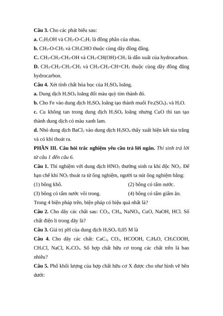 Câu 9. Hoá học hữu cơ là ngành hoá học chuyên nghiên cứu về