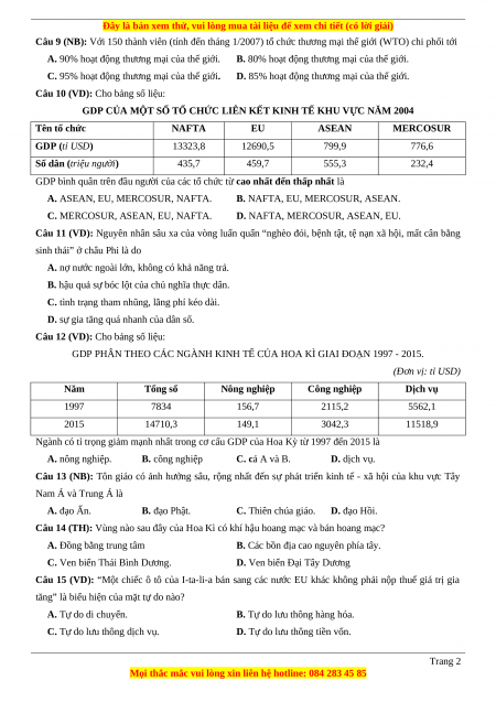 Câu 9 (NB): Với 150 thành viên (tính đến tháng 1/2007) tổ chức thương mại thế giới (WTO) chi phối tới
