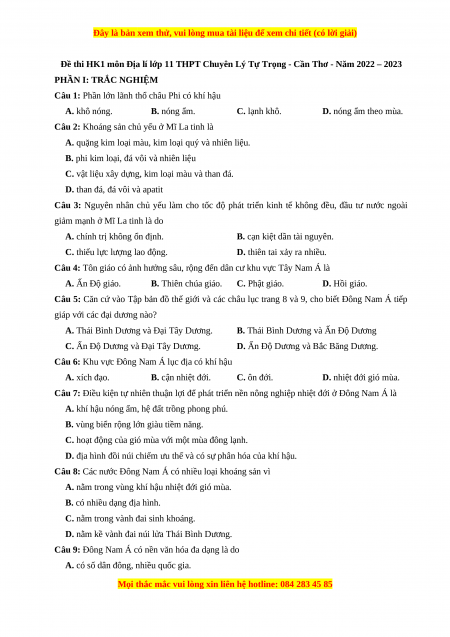 +Đề thi học kì 1 Địa Lý năm 2023 trường THPT Chuyên Lý Tự Trọng - Cần Thơ;