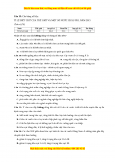 Câu 13: Hiệp hội các nước Đông Nam Á (ASEAN) được thành lập vào năm A. 1967 B. 1977. C. 1995. D. 1997.