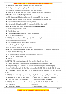 Câu 10 (TH): Khu vực Tây Nam Á không có đặc điểm nào sau đây?
