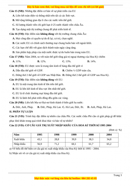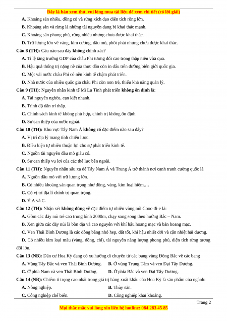 Câu 7 (NB): Nhận xét đúng nhất về thực trạng tài nguyên của Châu Phi Trang 1