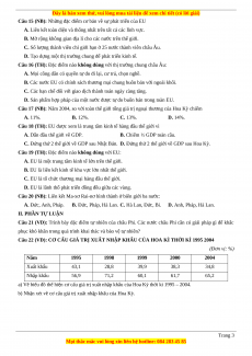 Câu 18 (TH): EU được xem là trung tâm kinh tế hàng đầu thế giới vì