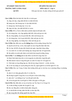 + Đề thi học kì 1 Địa Lý năm 2023 trường THPT Ngô Lê Tân - Bình Định;