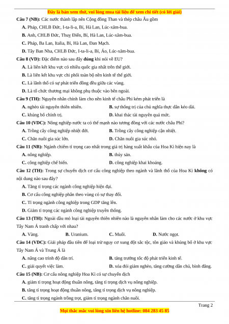 D. tập trung phần lớn những người theo đạo Hồi. Trang 1