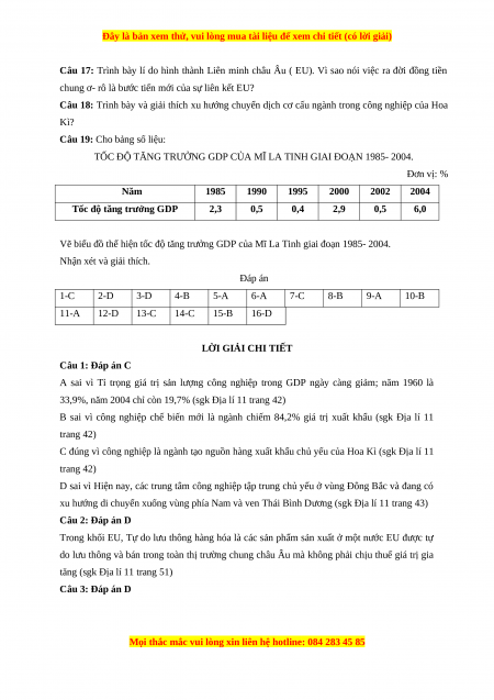 Vẽ biểu đồ thể hiện tốc độ tăng trưởng GDP của Mĩ La Tinh giai đoạn 1985- 2004. Nhận xét và giải thích. Đáp án 1-C 2-D 3-D 4-B 5-A 6-A 7-C 8-B 9-A 10-B 11-A 12-D 13-C 14-C 15-B 16-D LỜI GIẢI CHI TIẾT