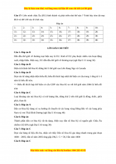 Câu 10: Năm 2004, so với toàn thế giới dân số của EU chiếm A. 6,5% B. 7,1% C. 5,2% D. 7,5%