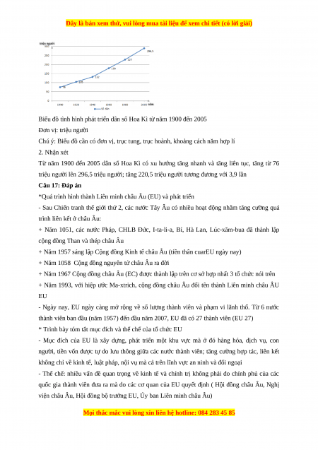Câu 7: Cho bảng số liệu: Năm 1800 1820 1840 1860 1880 1900 1920 1940 1960 1980 2005 Số dân 5 10 17 31 50 76 105 132 179 227 296,5