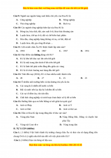 Câu 11: Liên minh châu Âu EU được thành lập năm nào? A. 1993 B. 1967 C. 1957 D. 1951