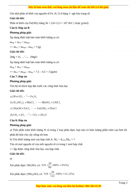 c) NaOH + FeCl3 → Fe(OH)3 + NaCl. d) CH4 + O2 → CO2 + H2O. Câu 8 (VDC):