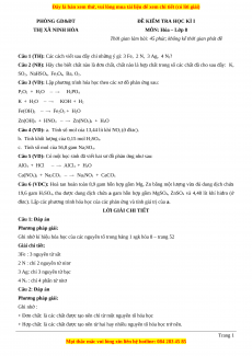 Đề thi học kì 1 Hóa lớp 8 năm 2023 Phòng GD và ĐT Thị Xã Ninh Hòa