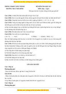 + Đề thi học kì 1 Hóa học năm 2023 trường THCS Thái Bình;