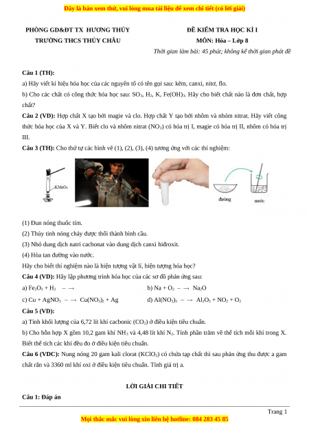 +Đề thi học kì 1 Hóa học năm 2023 trường THCS Thủy Châu - Thị Xã Hương Thủy;