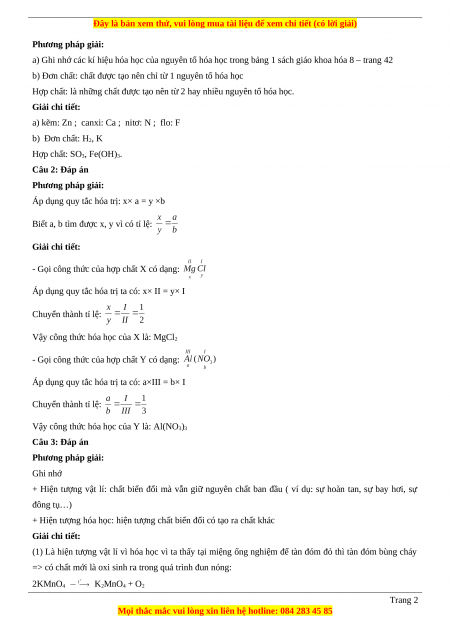 Câu 2 (VD): Hợp chất X tạo bởi magie và clo. Hợp chất Y tạo bởi nhôm và nhóm nitrat. Hãy viết công