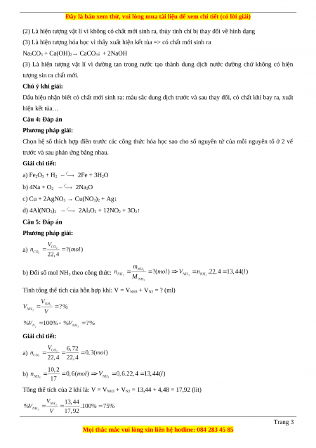 Tổng thể tích của 2 khí là: V = VNH3 + VN2 = 13,44 + 4,48 = 17,92 (lít) Trang 3