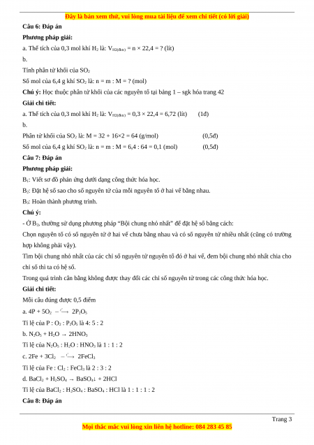 Câu 6 (VD): Tính thể tích ở đktc của: a. 0,3 mol khí H2. b. 6,4 gam khí SO2.