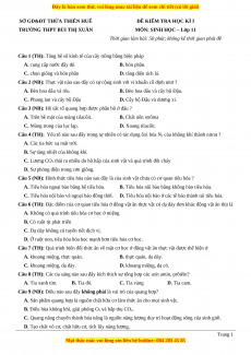 +Đề thi học kì 1 Sinh học năm 2023 trường THPT Bùi Thị Xuân - Thừa Thiên Huế;