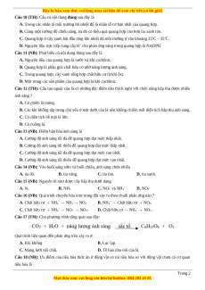 Câu 20 (TH): Diệp lục hấp thụ được 6 màu trong quang phổ, nhưng nhiều nhất là ở các bức xạ A. Đỏ và lục. B. Đỏ và xanh tím C. Đỏ và lam D. Lam, xanh tím.