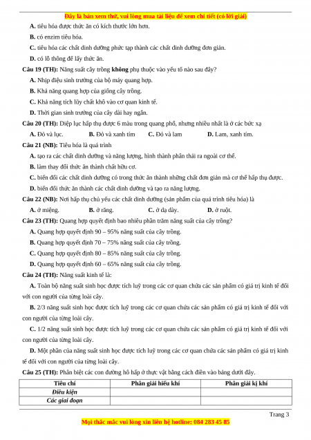 Câu 18 (NB): Ưu điểm của tiêu hóa thức ăn ở động vật có túi tiêu hóa so với động vật chưa có cơ quan tiêu hóa là Trang 2