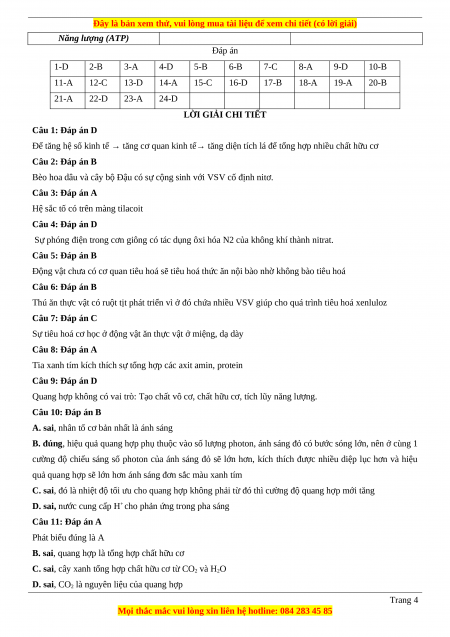 Năng lượng (ATP) Đáp án 1-D 2-B 3-A 4-D 5-B 6-B 7-C 8-A 9-D 10-B 11-A 12-C 13-D 14-A 15-C 16-D 17-B 18-A 19-A 20-B 21-A 22-D 23-A 24-D LỜI GIẢI CHI TIẾT