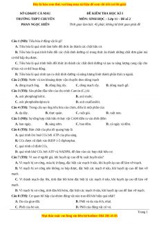 Đề thi học kì 1 Sinh học 11 trường THPT Chuyên Phan Ngọc Hiển - Cà Mau