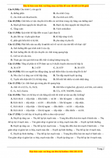 Câu 13 (NB): Tổng số phân tử ATP được tạo ra ở chuỗi chuyền electron hô hấp là A. 36 ATP B. 2 ATP C. 26 ATP D. 38 ATP.
