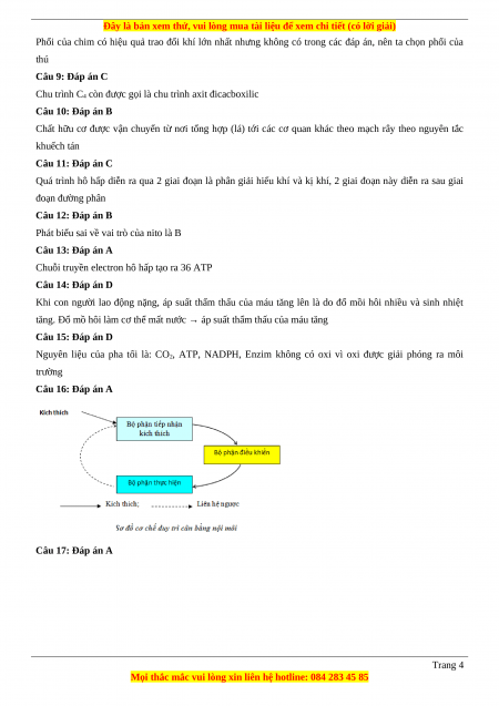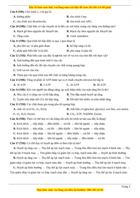 Câu 9 (NB): Chu trình C4 còn gọi là A. đường phân B. chu trình Crep.