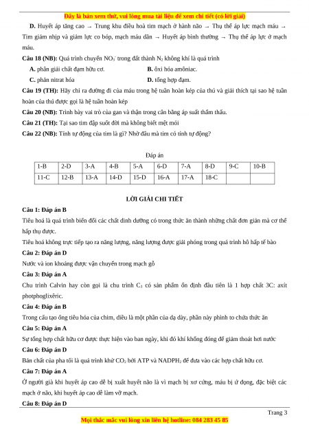 Câu 22 (NB): Tính tự động của tim là gì? Nhờ đâu mà tim có tính tự động? Đáp án 1-B 2-D 3-A 4-B 5-A 6-D 7-A 8-D 9-C 10-B 11-C 12-B 13-A 14-D 15-D 16-A 17-A 18-C LỜI GIẢI CHI TIẾT