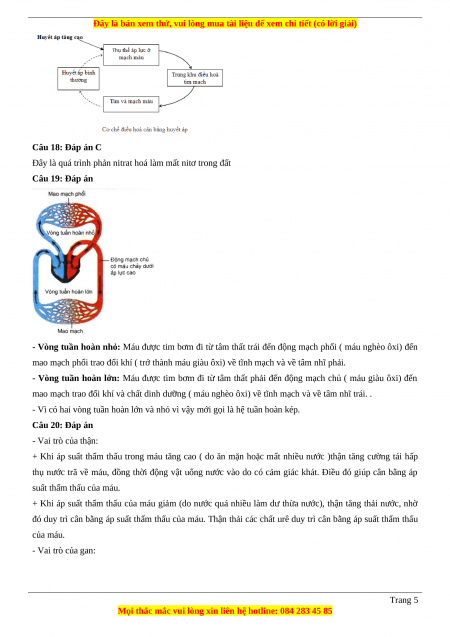 Câu 19 (TH): Hãy chỉ ra đường đi của máu trong hệ tuần hoàn kép của thú và giải thích tại sao hệ tuần