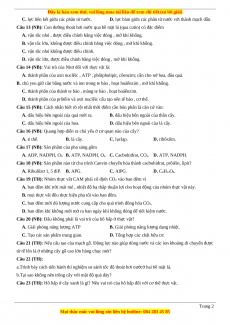 Câu 7 (NB): Sản phẩm nào của pha sáng không đi vào pha tối? A. ATP. B. NADPH. C. ATP, NADPH. D. O2.