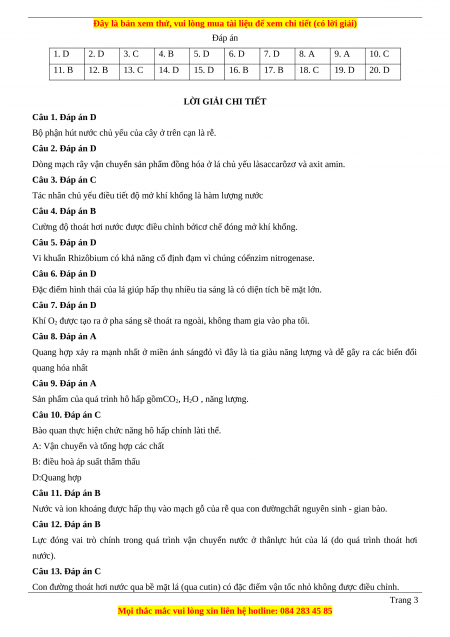 Đáp án 1. D 2. D 3. C 4. B 5. D 6. D 7. D 8. A 9. A 10. C 11. B 12. B 13. C 14. D 15. D 16. B 17. B 18. C 19. D 20. D LỜI GIẢI CHI TIẾT Câu 1. Đáp án D