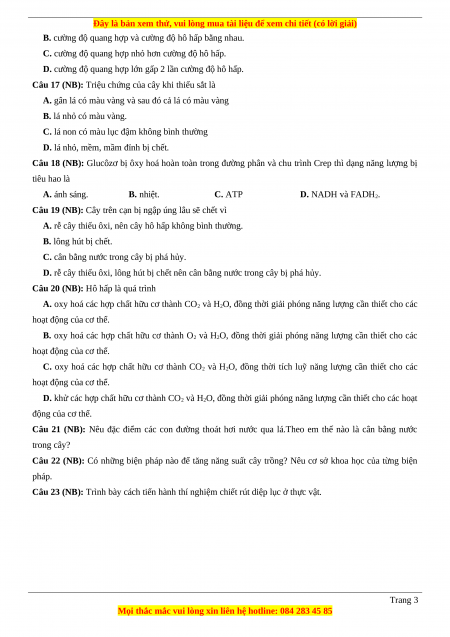 Câu 23 (NB): Trình bày cách tiến hành thí nghiệm chiết rút diệp lục ở thực vật. Trang 3