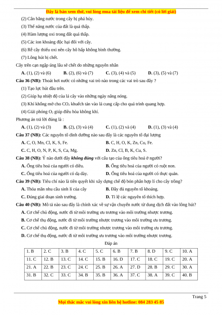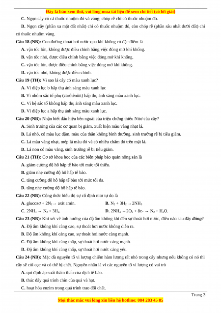 Câu 33 (NB): Cây trưởng thành thoát hơi nước chủ yếu do A. cutin.