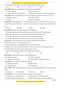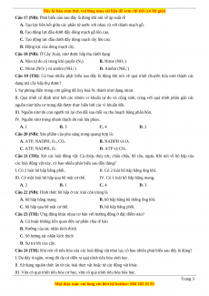 Câu 20 (NB): Sản phẩm của pha sáng trong quang hợp là: A. ATP, NADPH, O2, CO2 B. NADPH và O2 C. ATP, NADPH, O2 D. ATP và CO2.
