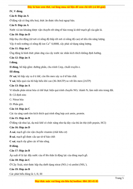 D. Mạch rây vận chuyển các chất từ lá xuống rễ. Trang 2