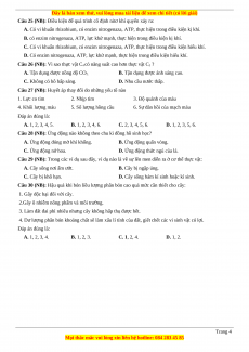 4. Dư lượng phân bón khoáng chất sẽ làm xấu lí tính của đất, giết chết các vi sinh vật có lợi. Đáp án đúng là: A. 1, 2, 3, 4. B. 1, 2, 3. C. 1, 2, 4. D. 1, 2. Trang 4