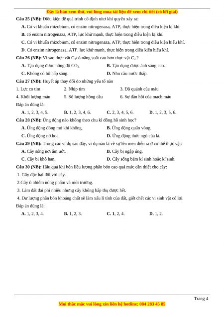 Câu 25 (NB): Điều kiện để quá trình cố định nitơ khí quyển xảy ra: