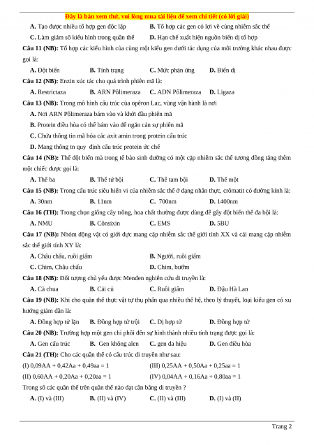 Câu 10 (NB): Trong thực tiễn, hoán vị gen góp phần Trang 1