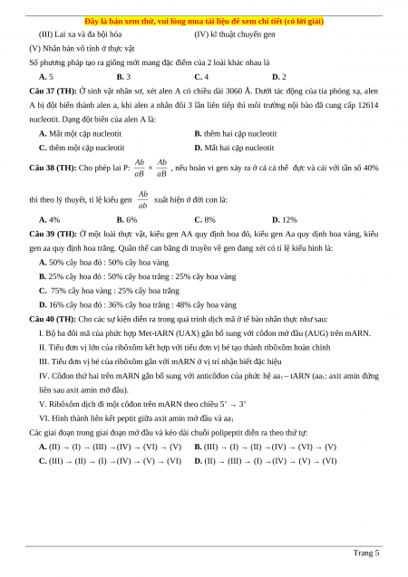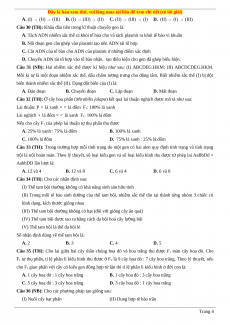 Câu 9 (NB): Hóa chất 5-brôm uraxin thường gây đột biến gen dạng thay thế một cặp A. A-T bằng T-A B. G-X bằng A-T C. G-X bằng X-G D. A-T bằng G-X