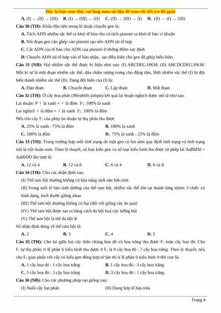 Câu 36 (NB): Cho các phương pháp tạo giống sau: