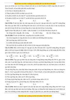 N15 sang môi trường nuôi cấy chỉ có N14. Các tế bào vi khuẩn này đều thực hiện phân đôi 3 lần liên tiếp Trang 1