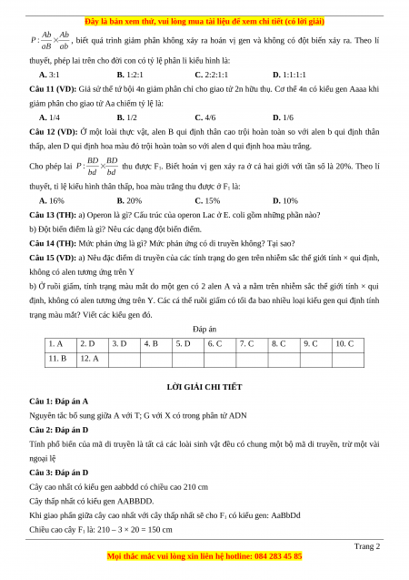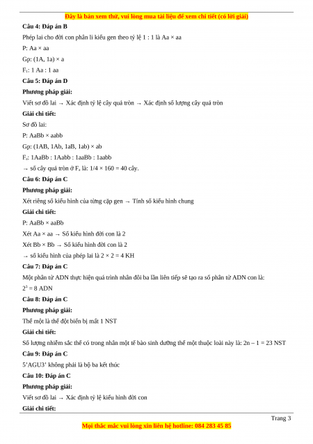 5’AGU3’ không phải là bộ ba kết thúc Câu 10: Đáp án C Phương pháp giải: