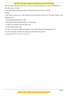 Câu 15 (VD): a) Nêu đặc điểm di truyền của các tính trạng do gen trên nhiễm sắc thể giới tính × qui định,