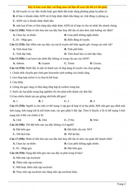 D. Thay một cặp nucleotit này bằng một cặp nucleotit khác. Trang 2
