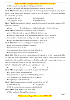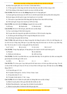 Câu 17 (NB): Lắp ráp các nucleotit tự do theo nguyên tắc bổ sung với mỗi mạch khuôn của phân tử ADN là vai trò của enzim nào? A. Ligaza B. ADN polimeraza C. Enzim tháo xoắn D. ARN polimeraza