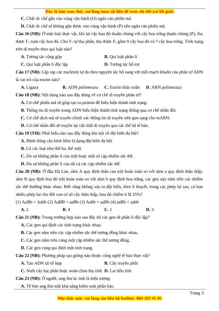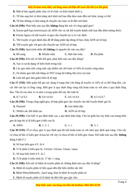 TÀI LIỆU BỘ BÁN CHẠY MÔN Sinh Học