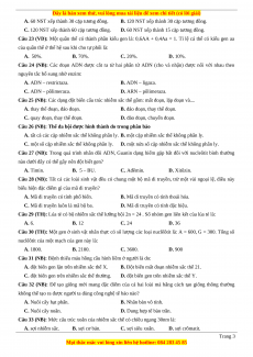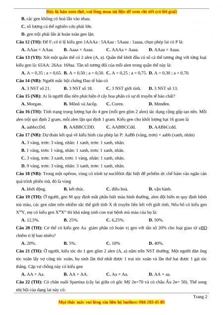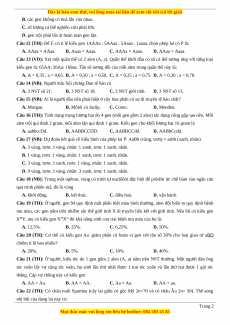 Câu 35 (VD): Một quần thể xuất phát có tỉ lệ của thể dị hợp bằng 60%. Sau một số thế hệ tự phối liên