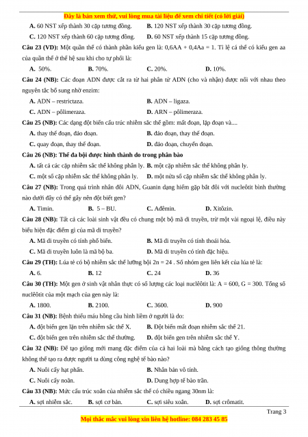 TÀI LIỆU BỘ BÁN CHẠY MÔN Sinh Học