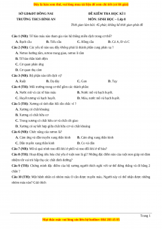 + Đề thi học kì 1 Sinh học năm 2023 trường THCS Nguyễn Bỉnh Khiêm - Quảng Ninh;
