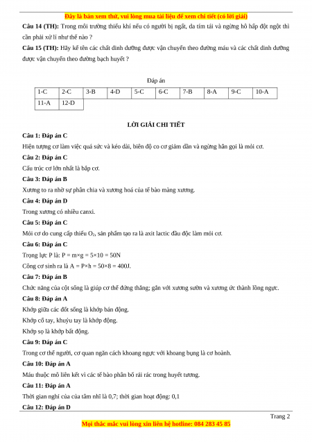 Câu 1 (NB): Hiện tượng cơ làm việc quá sức và kéo dài, biên độ co cơ giảm dần và ngừng hẳn gọi là A. Co cơ B. Dãn cơ C. Mỏi cơ